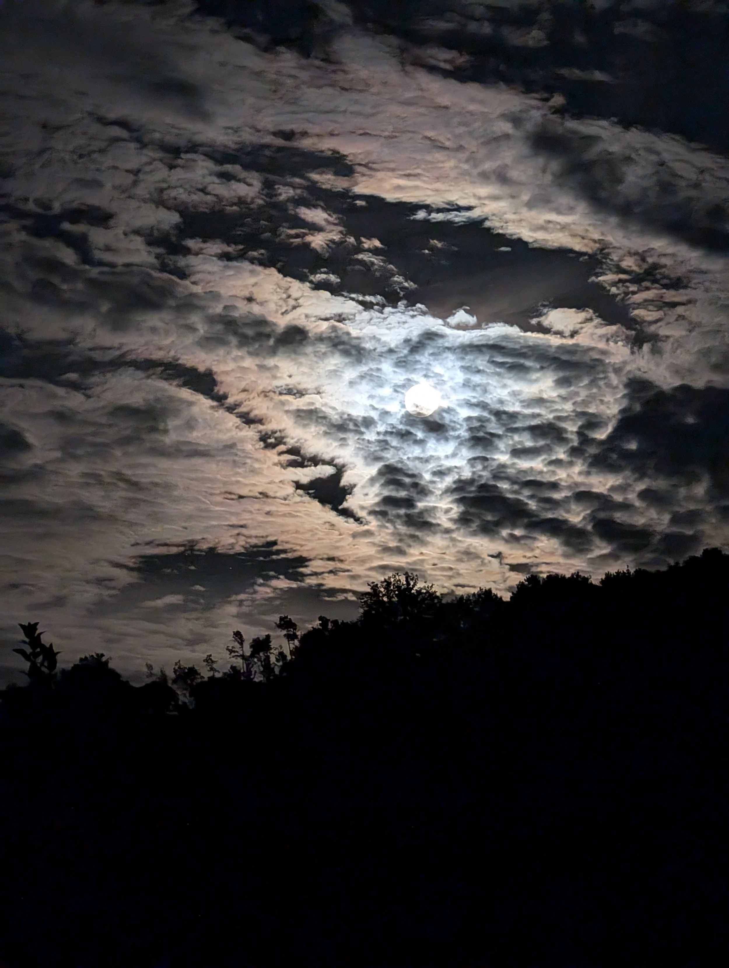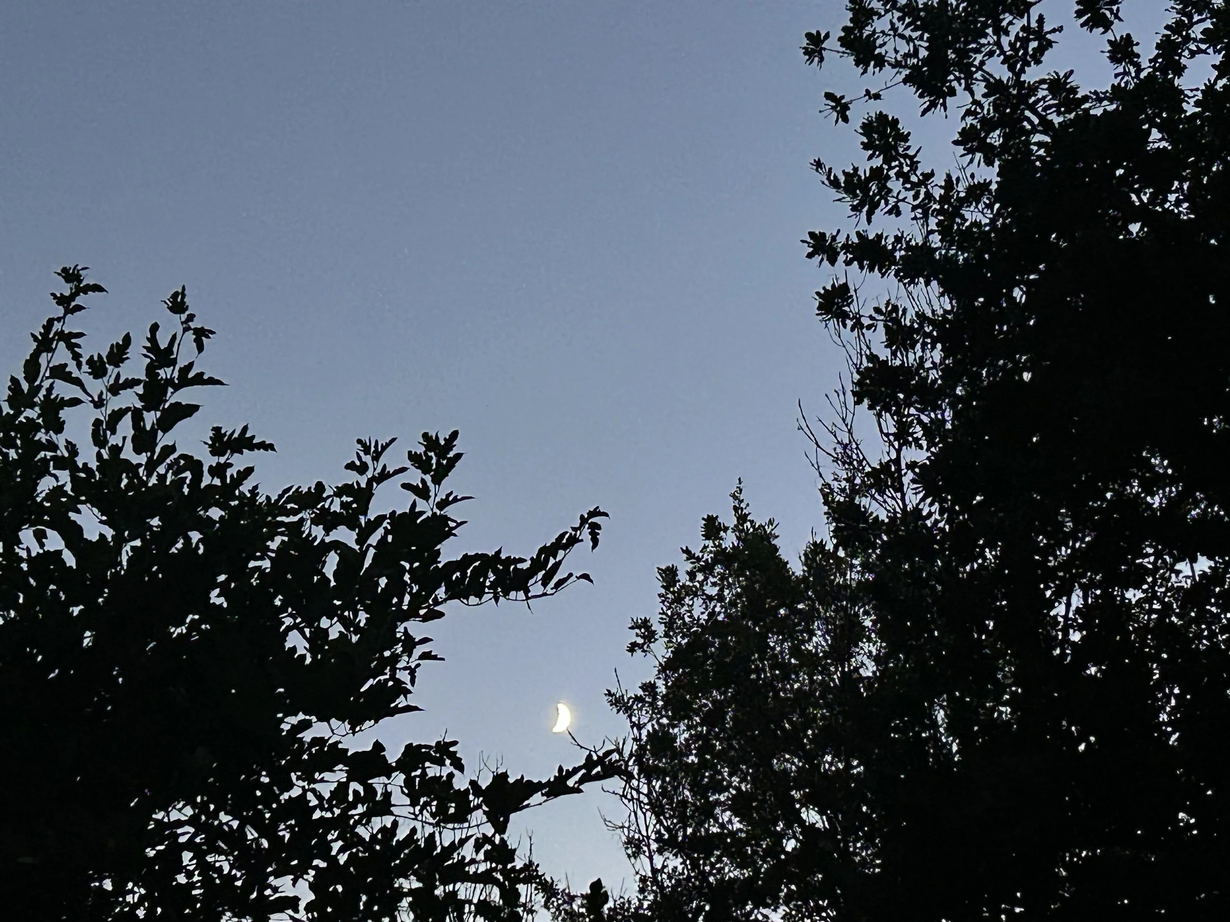 I should have stopped sooner in my day to look. THIS is the magic which keeps me sane. And I began to realize—in spite of previous rants—that I don't have exclusive rights to viewing absolute beauty because I live in the country. This moon is shining, the trees are announcing the change of seasons in every city, even in prisons or places devastated by war and famine. No matter how little we have or how crazy our lives, we all are enveloped in an impressionist painting if we just look up. We all share the brilliant sunlight, the ever-changing sky, the magical phases of the moon.