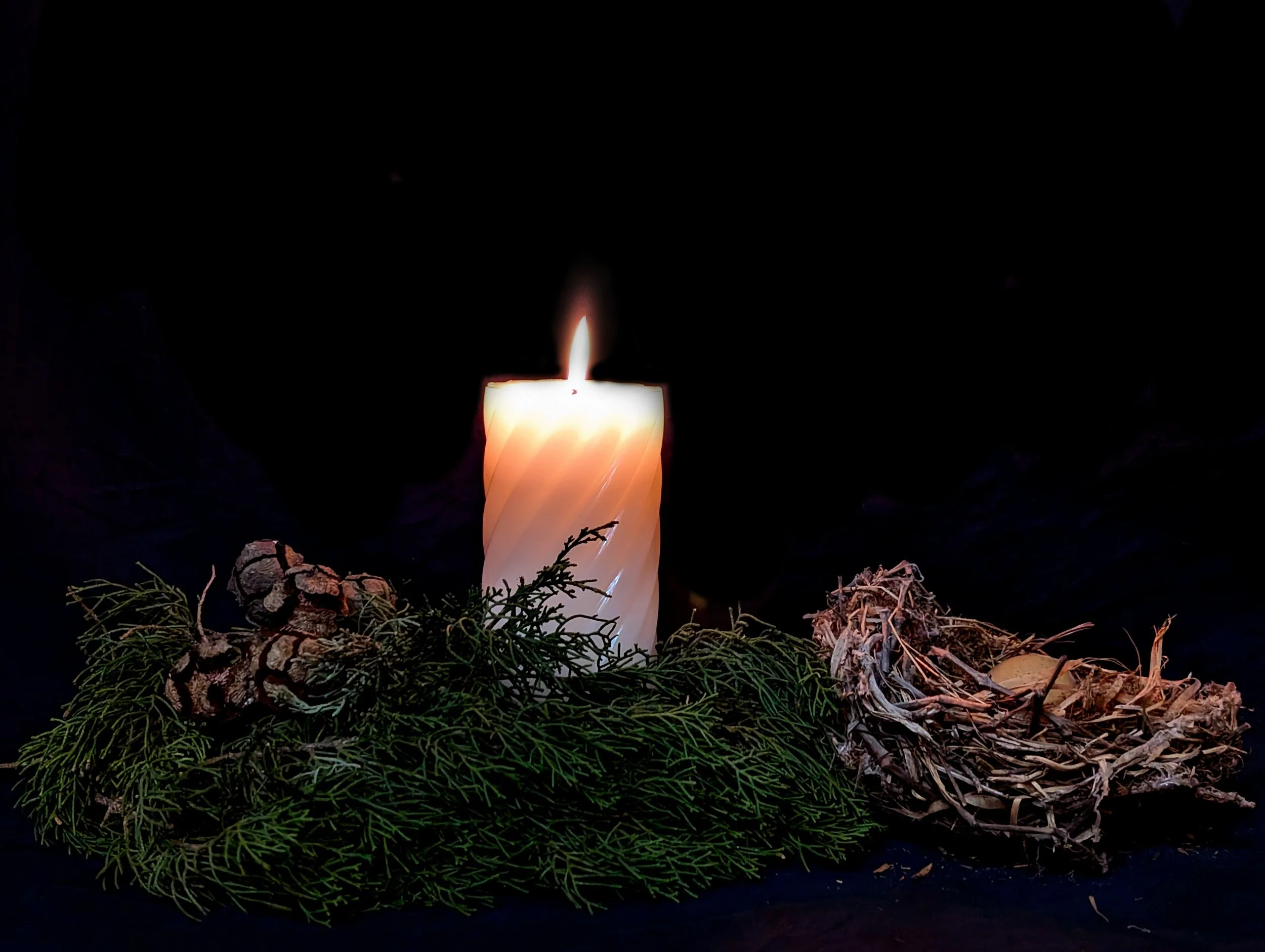 Every evening I light candles in a dark room. A small light in the dark winter. One more candle each week. Midwifing the birth of the sun. Perhaps it is easier to feel the dominance of the night when you live in deep country. Away from the city, with no ambient light, the rising dark covers everything, dominates everything. For country folk, most of us farmers, living with hours of darkness, quiet and immense black and star-filled sky means time for Reflection. Quiet. Clarity. And with that comes Peace.